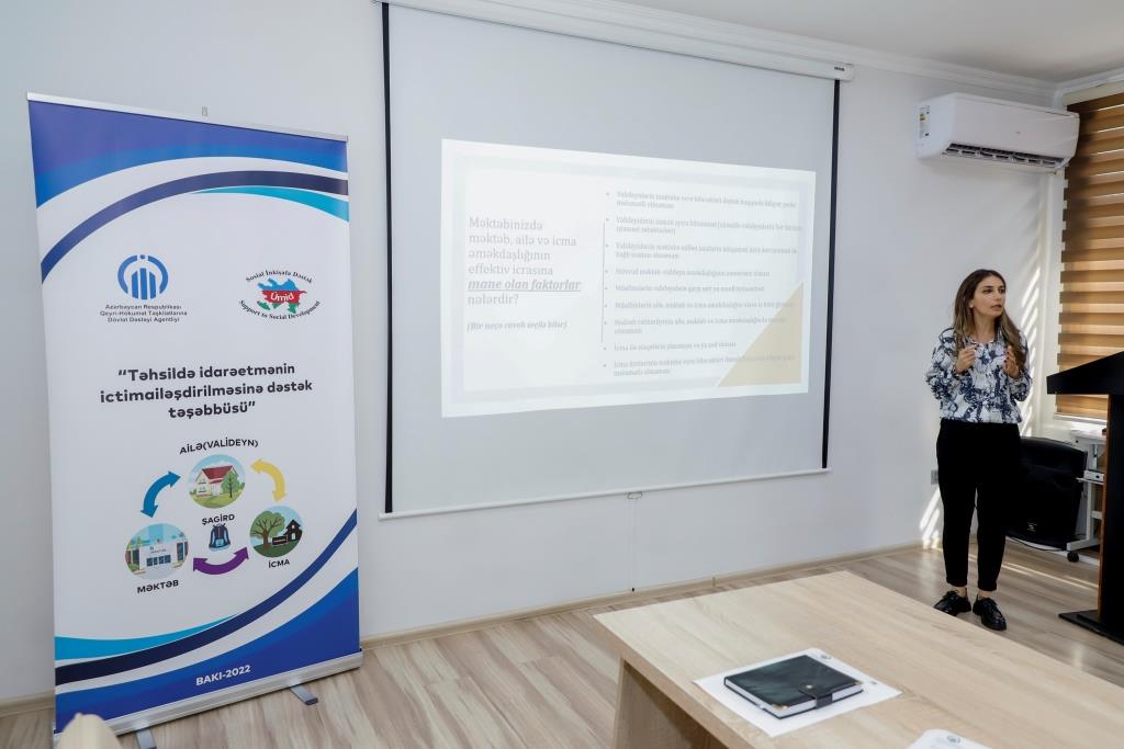 “Məktəb icmasının inkişaf etdirilməsi vasitəsilə məktəbin nüfuzunun artırılması təşəbbüsü” layihəsinin təqdimatı